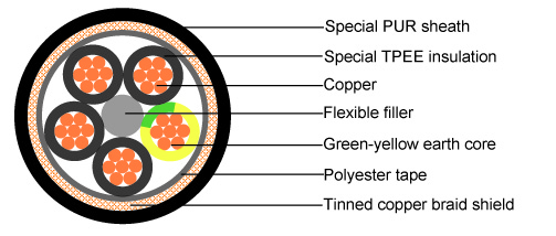 TPEE Insulated PUR Sheathed Cables with Screen, 300/500V