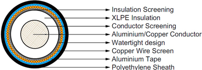 Insulation is of cross-linked polyethylene compound XLPE. |