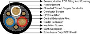 1×Central Extensible Pilot:EPR covered flexible stranded tinned copper conductor.