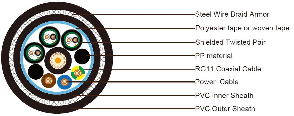 1x RG11 + 3x2.5 Power Cable + 3x1x2x22AWG Data Pairs SWB PVC Sheathed Composite Cable