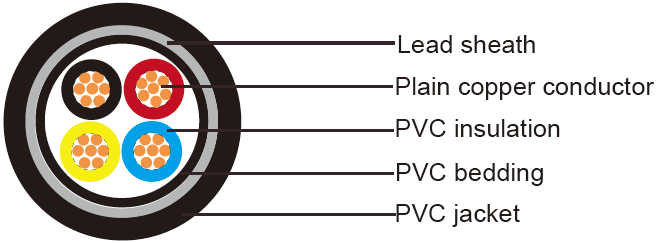 600/1000V,PVC Insulated and Lead Sheathed Cables according to IEC 60502-1 Four core(unarmoured)